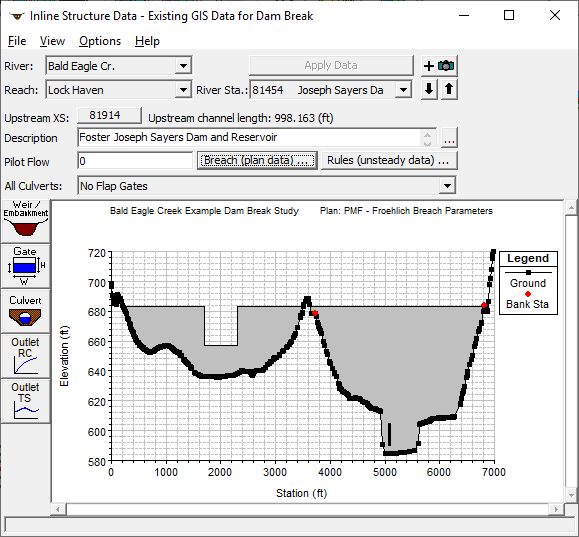Figure 14 5. Inline Structure Editor with Example Dam Shown