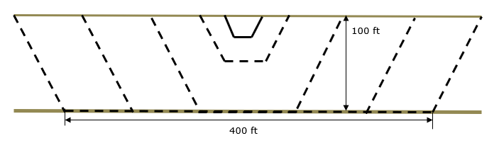 User Specified Vertical/Horizontal Growth Rate. When the Breach Progression Tab has been selected, the user can select either the User Specified Vertical/Horizontal Growth Rate (default) or the Proportional Vertical/Horizontal Growth Rate. If the User Specified Vertical/Horizontal Growth Rate option is selected, then the breach will grow in the horizontal direction at a rate that will allow it to reach its full length during the user specified breach time (Figure 14-7.). However, the vertical growth rate, will be based on the user entered Vertical to Horizontal ratio. For the typical case where the breach is wider than it is deep, the breach will reach the final bottom elevation before it has reached the final width. See discussion on Breach Growth Shape, below.