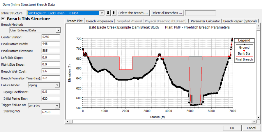 Figure 14 6. Dam Breach Data Editor with Example Dam