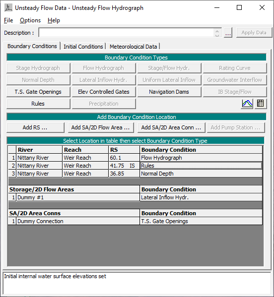 Figure 14 40. Selecting Rules from the Unsteady Flow Data Editor