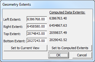 Press the OK button to use the new extent coordinates and to dismiss the window.