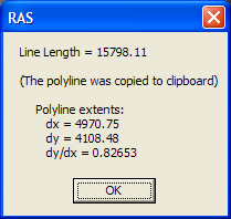 Press the Ctrl key, while depressed, left-mouse click around the area that the storage area represents. When the polygon is completed, release the Ctrl key. The dialog shown in Figure 5-118 will be displayed summarizing some of the line information and the x and y coordinates will be copied to the clipboard. Press the OK button to continue.