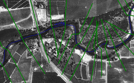 Figure 5‑131. The downstream and upstream cut lines have been georeferenced.