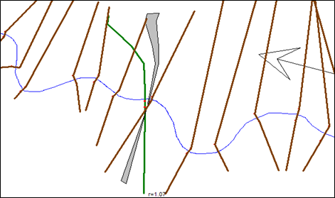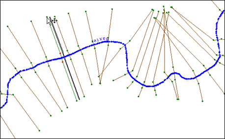 What happens if the bank positions move to the correct position but the ratio remains greater than 1? Move the right bank in. The GIS Tools | GIS Cut Lines | Adjust Cut Line Lengths to Match Sta/Elev option can also be used to adjust the cut line lengths.