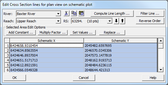 Once you have copied the cross section to the clipboard, paste it into the cut line table shown in Figure 5-129, as accessed through the GIS Tools | XS Cut Lines Table.