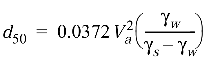 d50= the median diameter (ft), (Note, the tool convers US Customary rock diameters to inches)