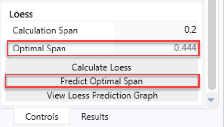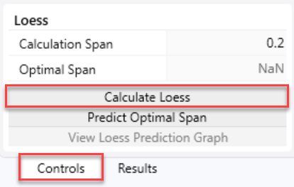 Press the Calculate LOESS button to compute and plot the local regression curve with whichever span is selected (see section on selecting a span below)