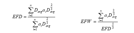 Eff. Depth/Eff. Width: Used in HEC 6, this is the effective depth and effective width. Effective Depth is a weighted average depth and the effective width is calculated from the effective depth to preserve aD2/3 for the cross section: