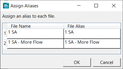 If you wish to change the file names, the Change Alias menu item allows you to change the name that is shown throughout the comparison tools. This is convenient if the previously used name is very long or you are new to a project and need to simplify the names. Provide the "Alias" and hit the OK button in the dialog provided.