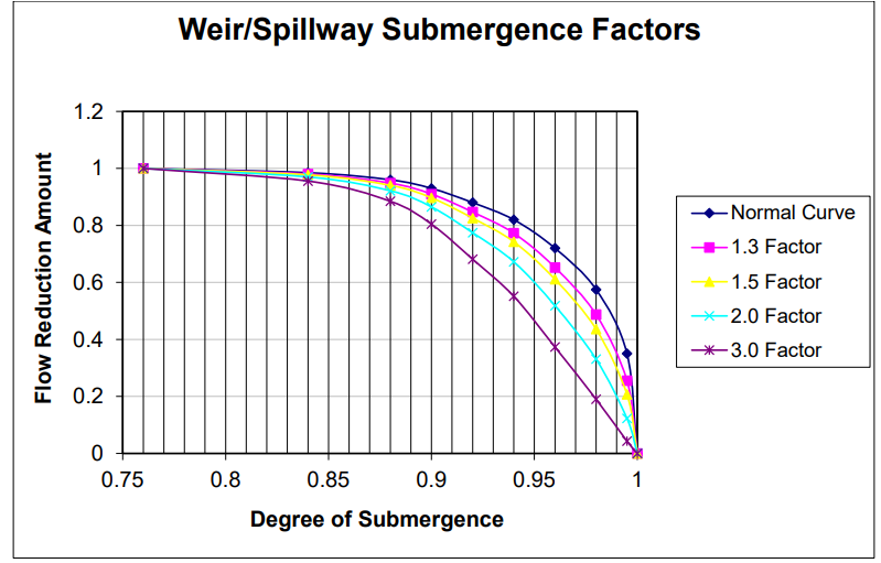 Figure 7 44. Weir/Spillway Submergence Factors.