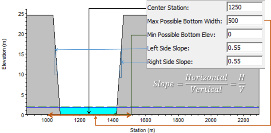 Note: Unlike the other breach algorithms in HEC-RAS DLBreach assumes the right and left side slopes are the same. Therefore, if a DLBreach model defines different breach side slopes, HEC-RAS will average the side slopes and use the average for both the right and left side slopes in DLBreach.