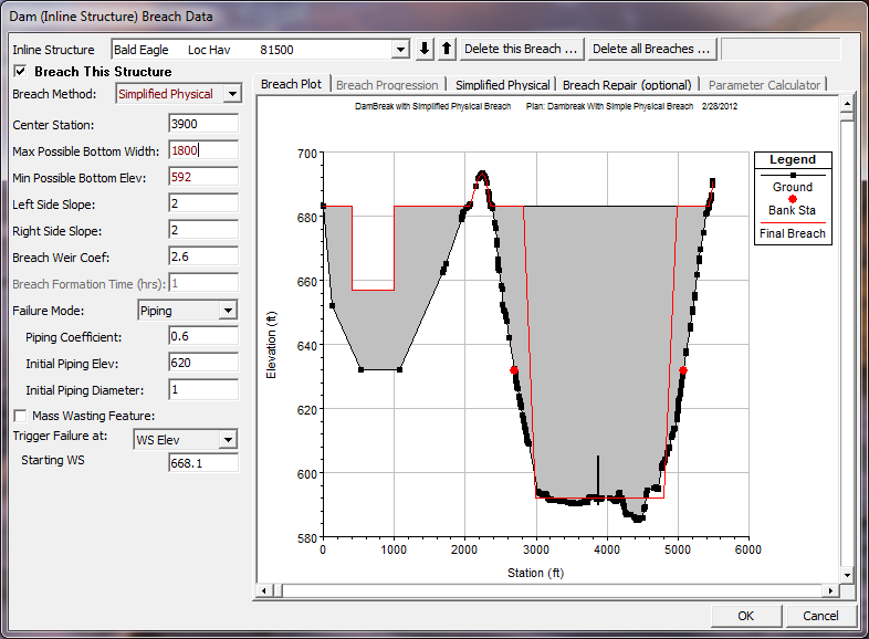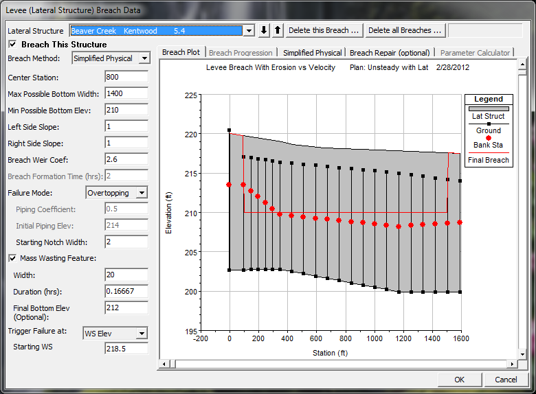 Figure 7 61.  HEC-RAS Simplified Physical Breach Option.
