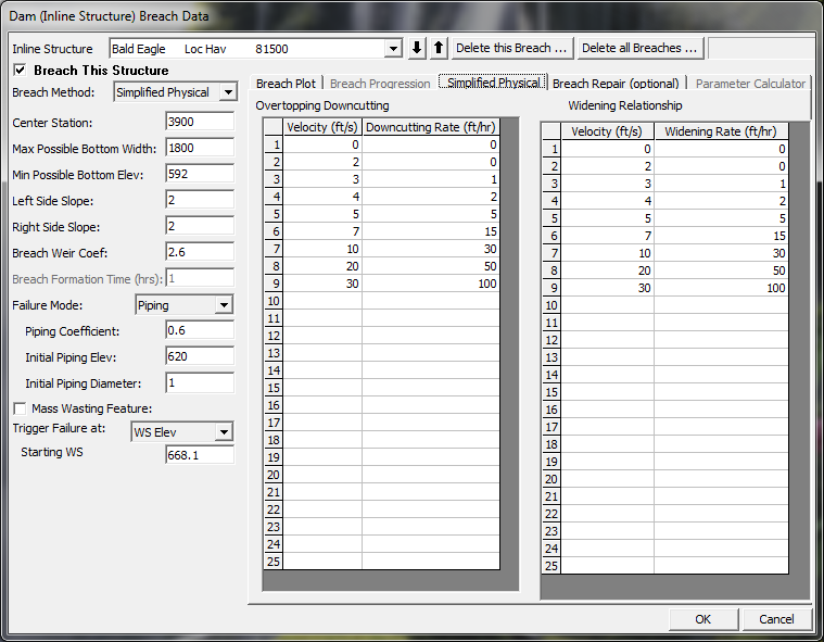 Figure 7 60. Simplified Physical Breaching Option for HEC-RAS