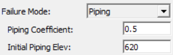 | Piping Coefficient | Orifice coefficient used to compute losses through the "pipe" for the piping failure (before it collapses). Typical Orifice coefficients for an engineered orifice are around 0.8. However, for a piping breach, the coefficient should be lower to represent additional energy losses. |