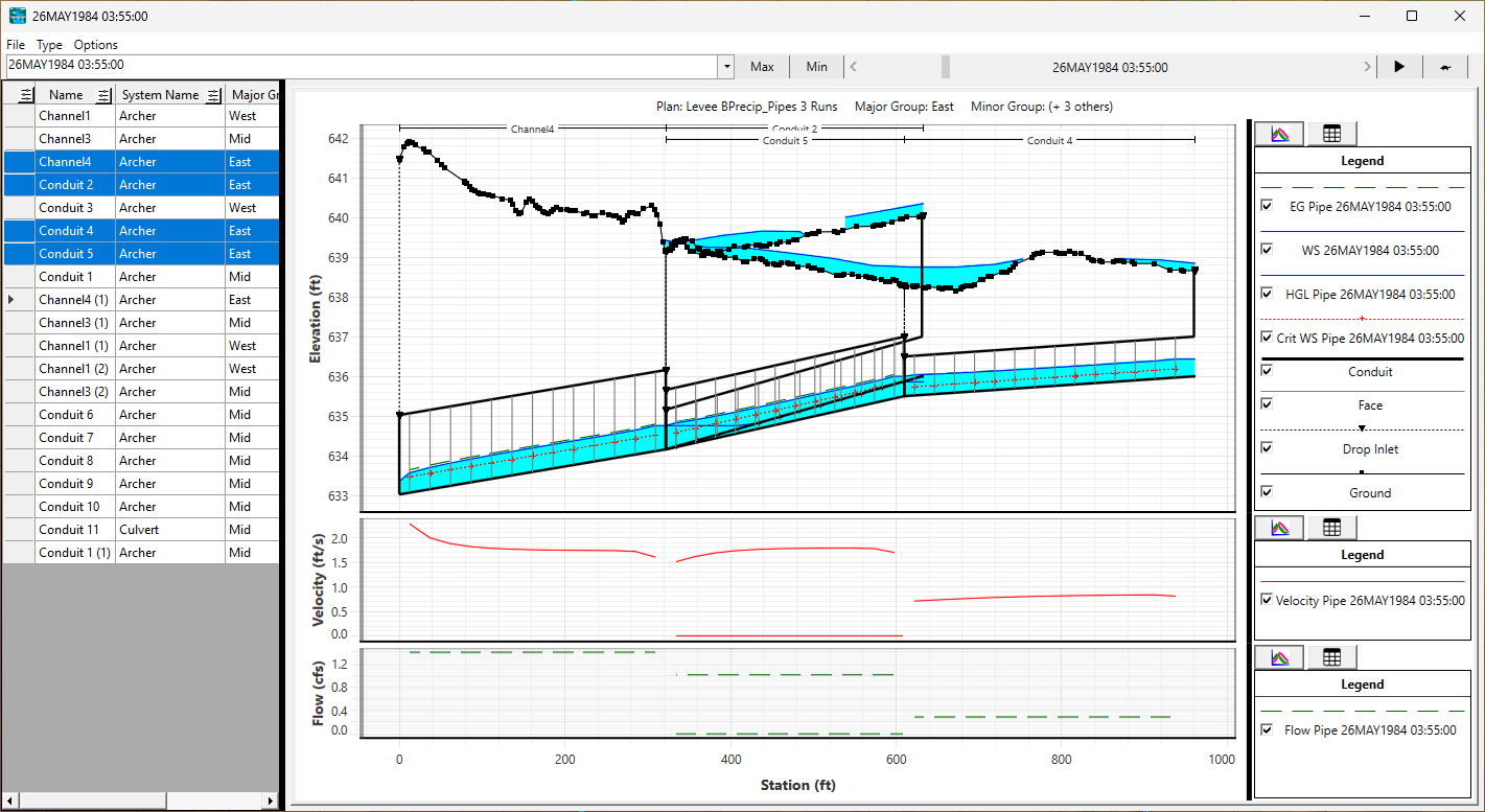 Stage flow hydrographs are available for both Pipe Nodes and Conduits, and they can be accessed from the main HEC-RAS Interface or RAS Mapper.