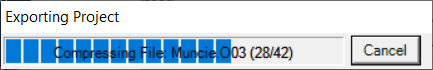 When ready to zip the project files, press the Create Zip File button. A progress bar will show the status of the zipping process and the file will be created at the specified destination.