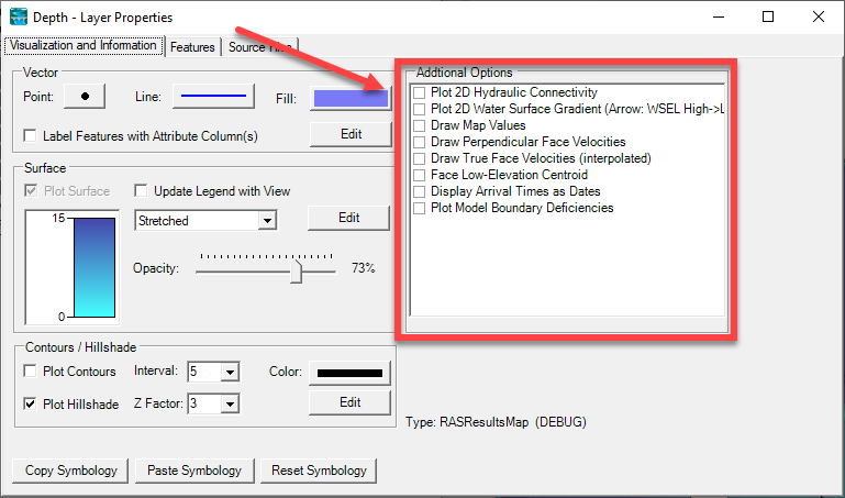 Along with the general mapping capabilities, there are additional plot options available to assist you in the analysis of simulation results.  These plot options are available from the Layer Properties for each of the RAS Results Map layers.