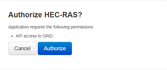 - You will be prompted to authorize HEC-RAS to access GRiD.