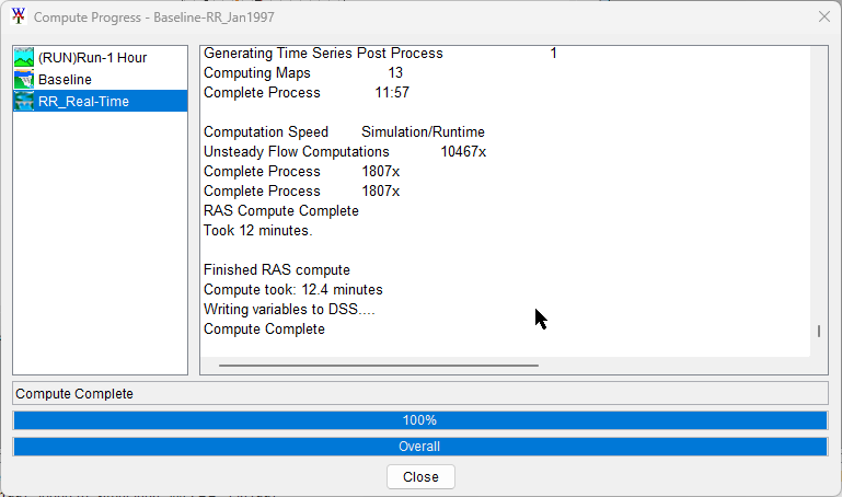 3. The compute complete dialog should look like the figure below. Close the Compute Progress window once the compute is complete.